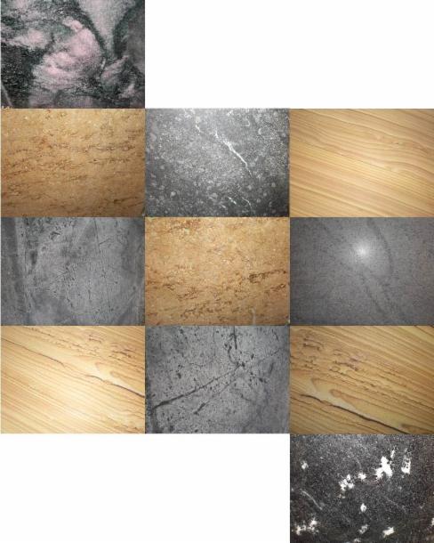 Neben den gängigen Materialien wie "Aurora", "Halmstad" und "Vanga", ist eine große Auswahl an ungewöhnlich, individuell strukturierten Materialien in Granit, Basalt & Sandstein verfügbar: